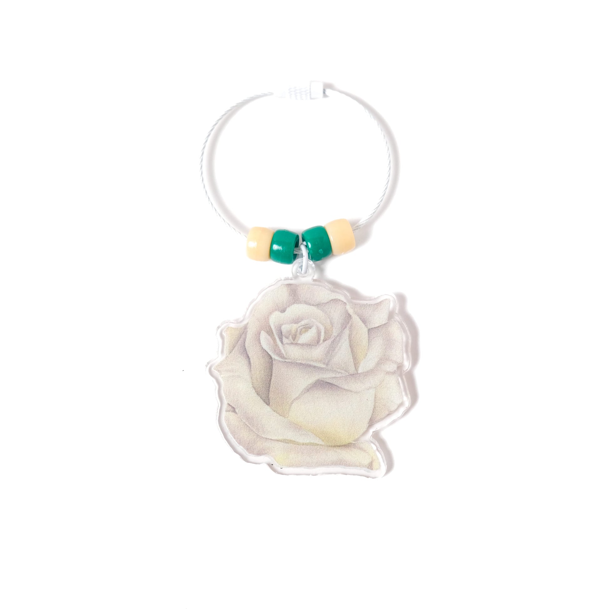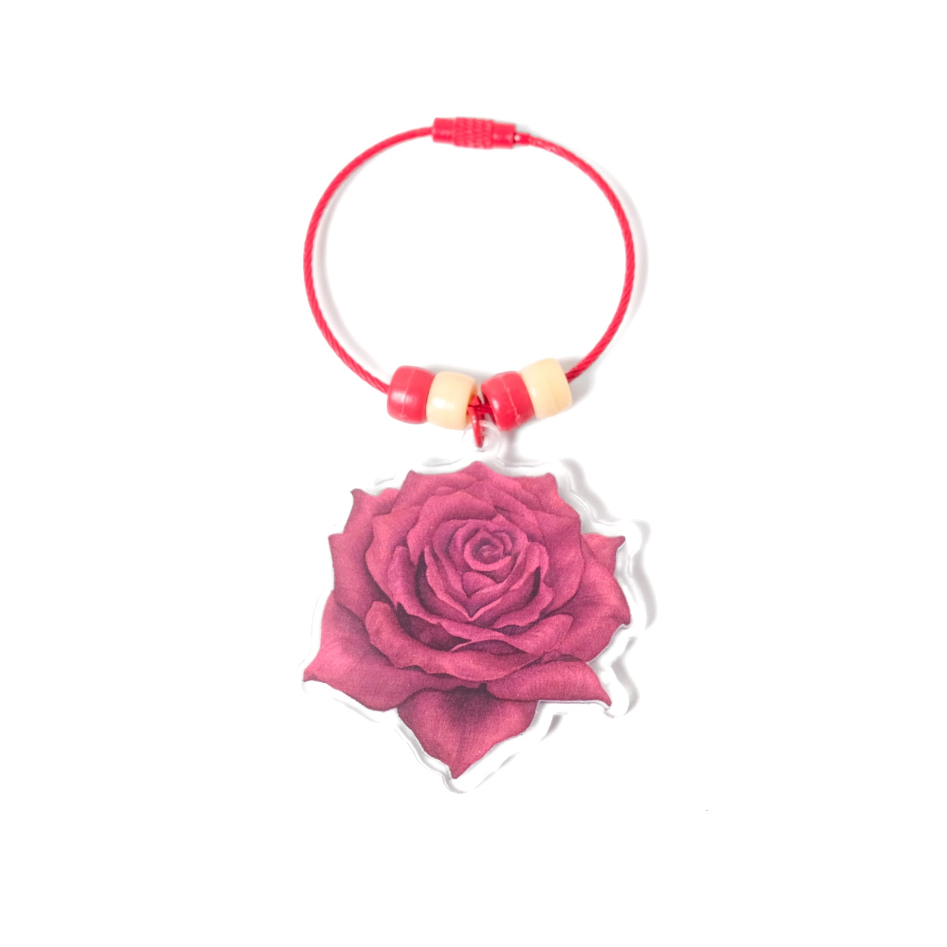 Add a touch of romance to your accessories with our elegant 5cm rose bag charms! Each charm features a handpainted rose design encased in crystal-clear acrylic, suspended from a coordinating charm ring adorned with delicate beads. Perfect for bags, pouches, or anik-aniks, these charms combine the beauty of Julie (deep red), Hazel (soft cream), and Sophia (blush pink) roses with sturdy yet stylish construction. The clear acrylic finish beautifully highlights every intricate petal detail, while the matching colored rings and beads complete the sophisticated look. 🌹